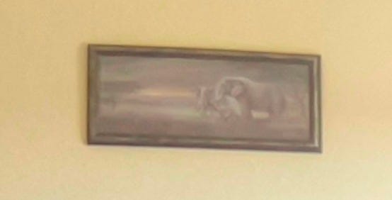 I look at the elephant painting on my wall in the back, reflected through my computer screen, while I ignore her square on the Zoom call.